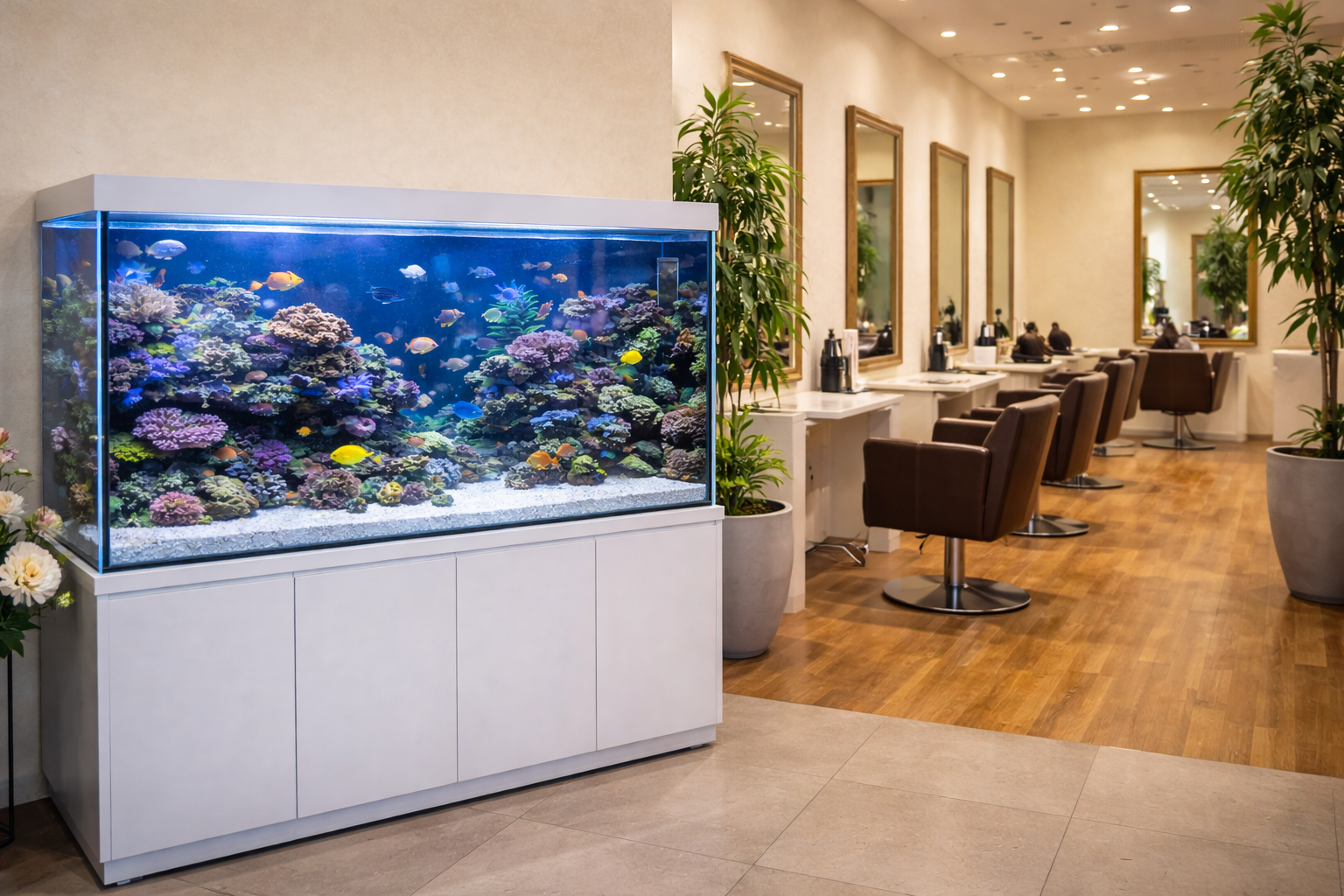 小規模ながら、アクアリウムの魅力と効果をしっかり体感できるサイズ感です。