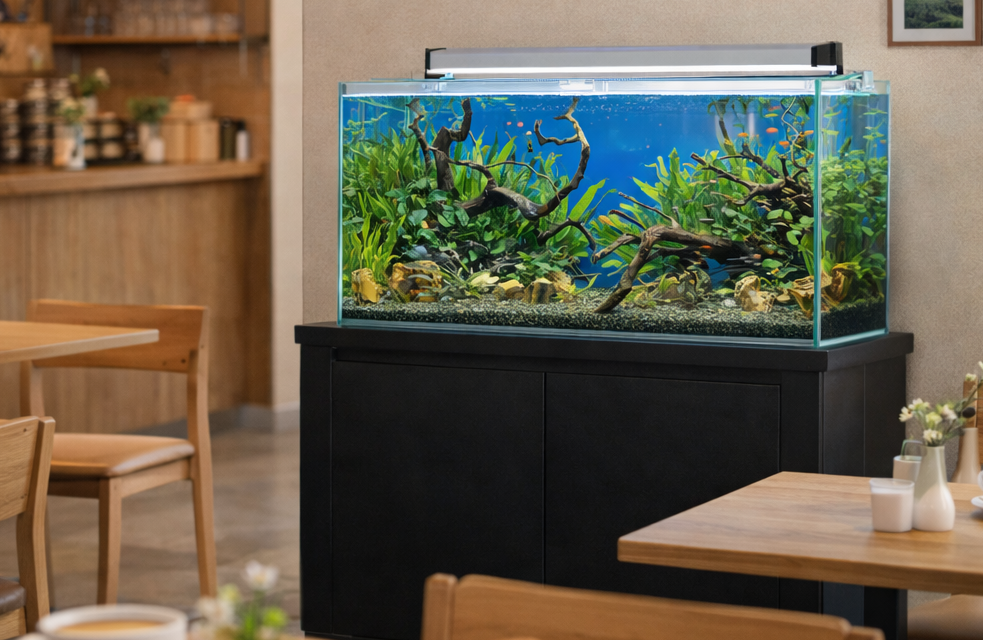 空間演出の中でも、水槽は非常に費用対効果が高い施策です。